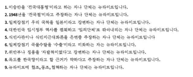 9. “뉴라이트에 협조, 동조, 협력하는 자나 단체는 뉴라이트입니다.”